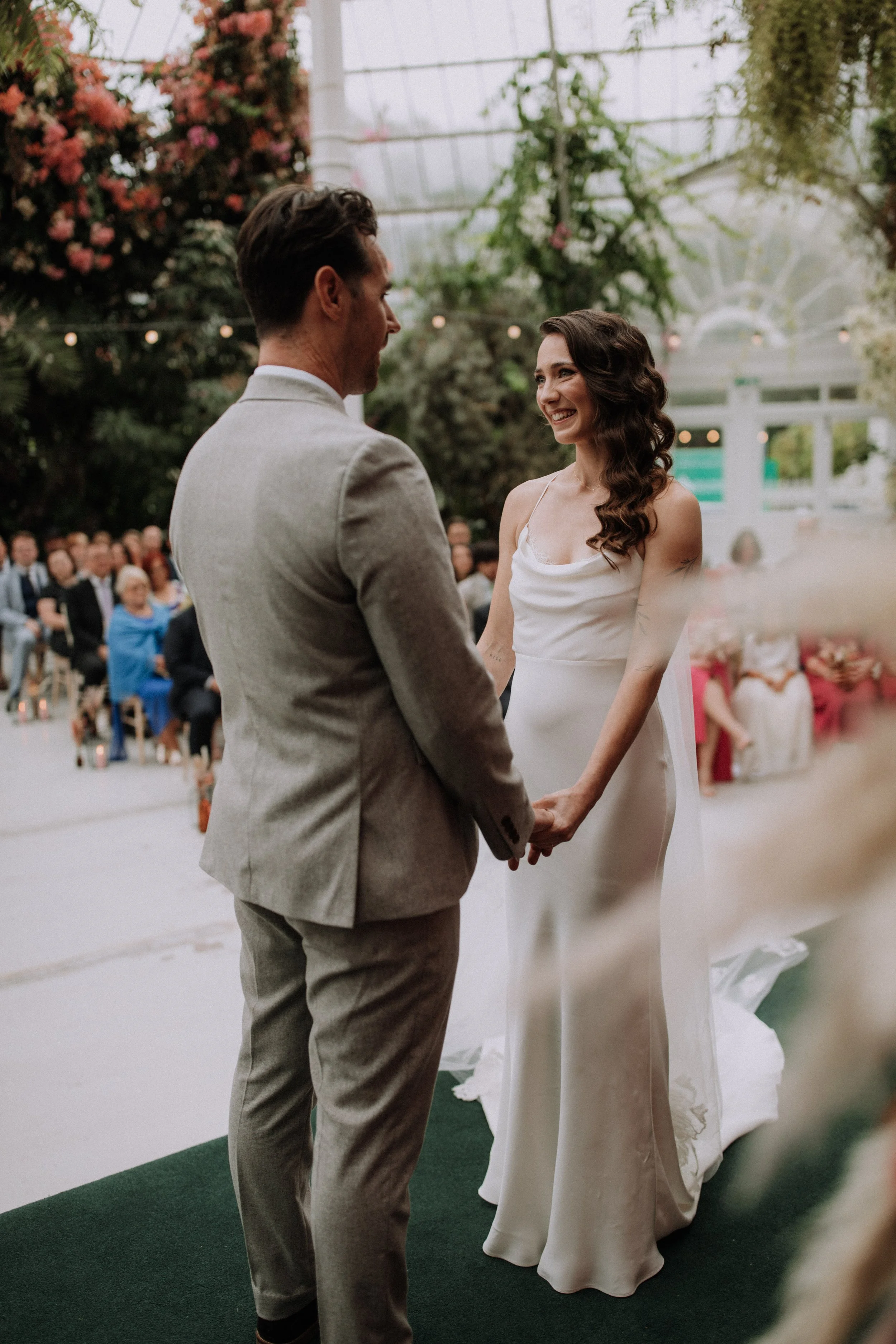 We set off just a short drive from the hotel and parked up at the gorrrrgeous Sefton Park, my oh my, even with the grey clouds and persistent drizzle, this venue is amazing.. As soon as you walk in, it’s like you’ve stepped off a plane, into somewhere tropical, a botanical collection to feast your eyes at! Guests shortly started arriving, she we got set up. Tripods, a plan in place, everything was ready.